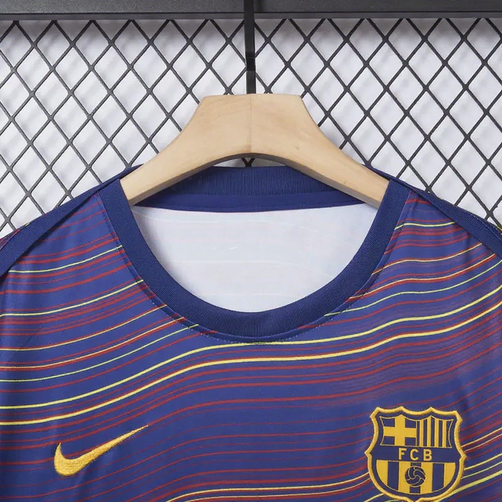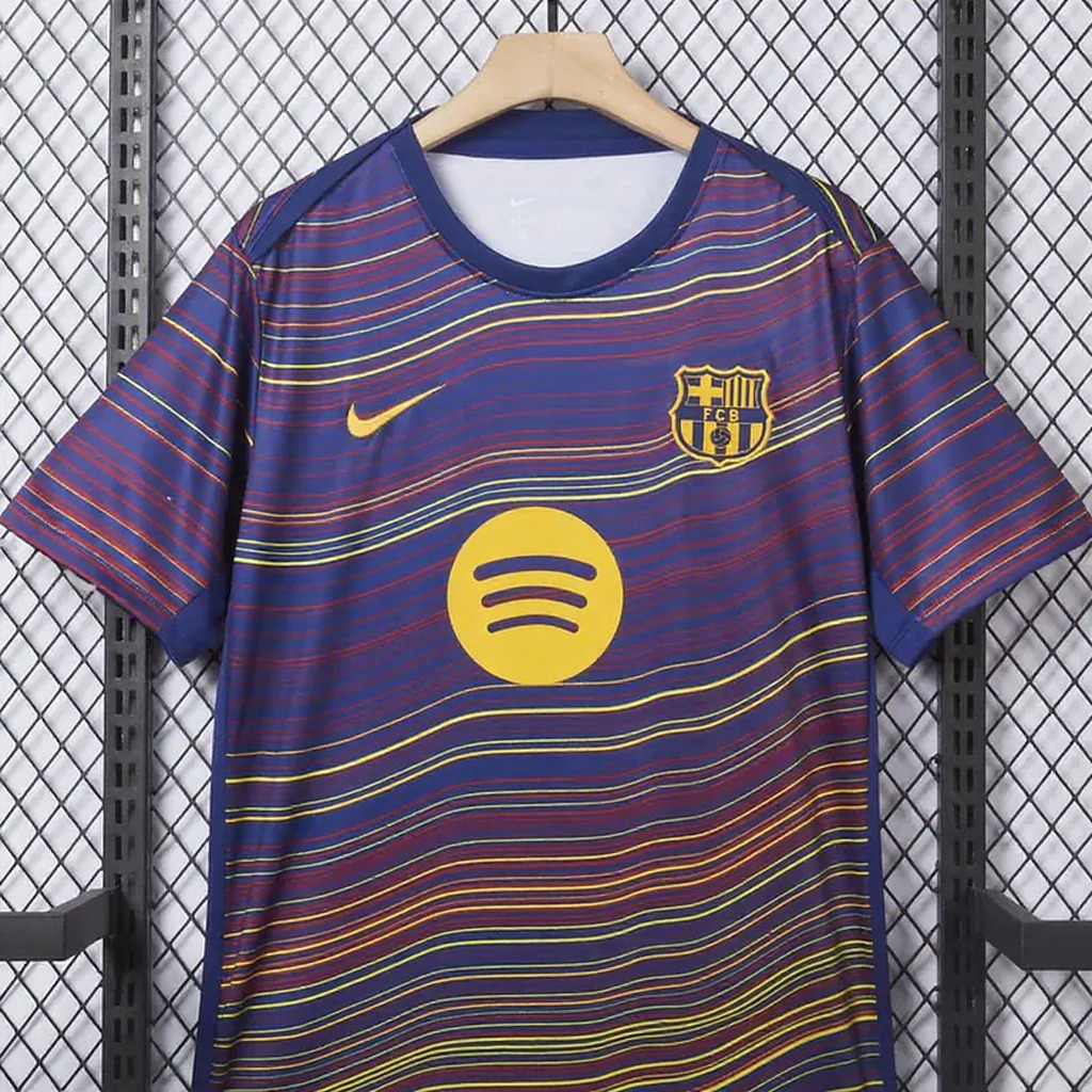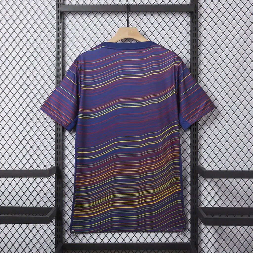 Barcelona 25-26 Deep Blue Pre-Match Training Jersey with Colorful Lines - Fan Version