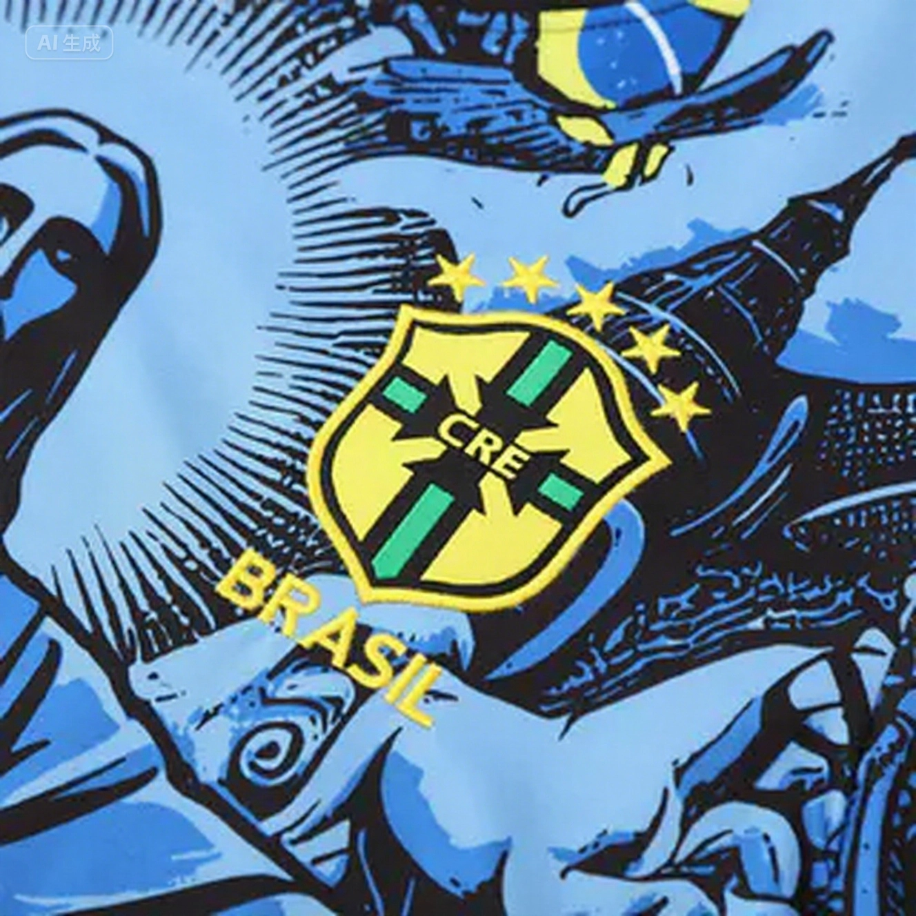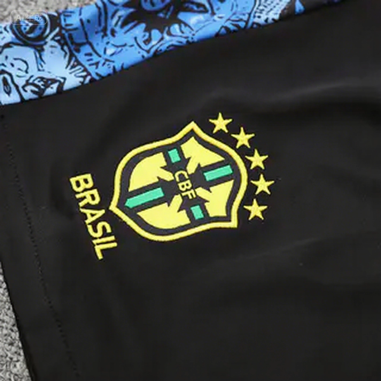 Brazil 2025 Blue Jesus Statue Short-Sleeve Training Set - Blue Top & Black Shorts