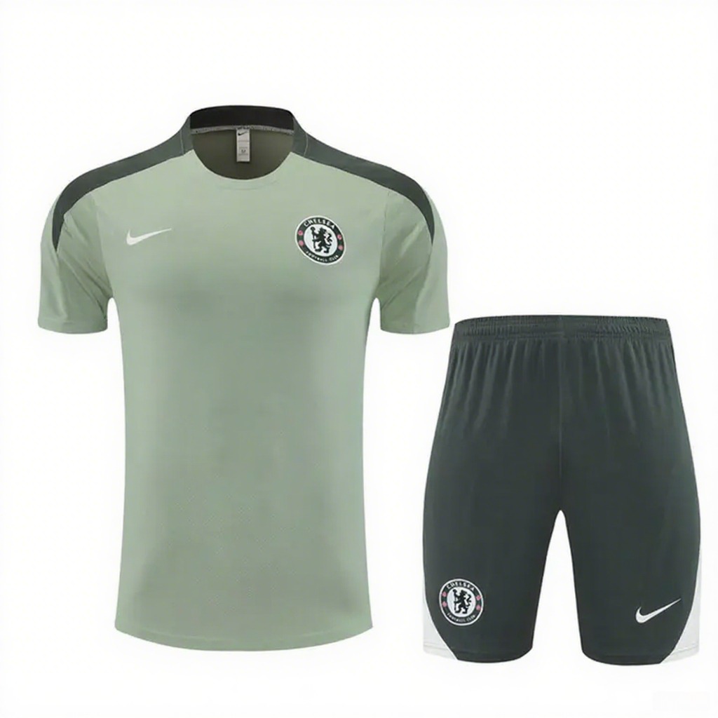 Chelsea 25-26 Kids Short-Sleeve Training Set - Light Green Top & Army Green Shorts