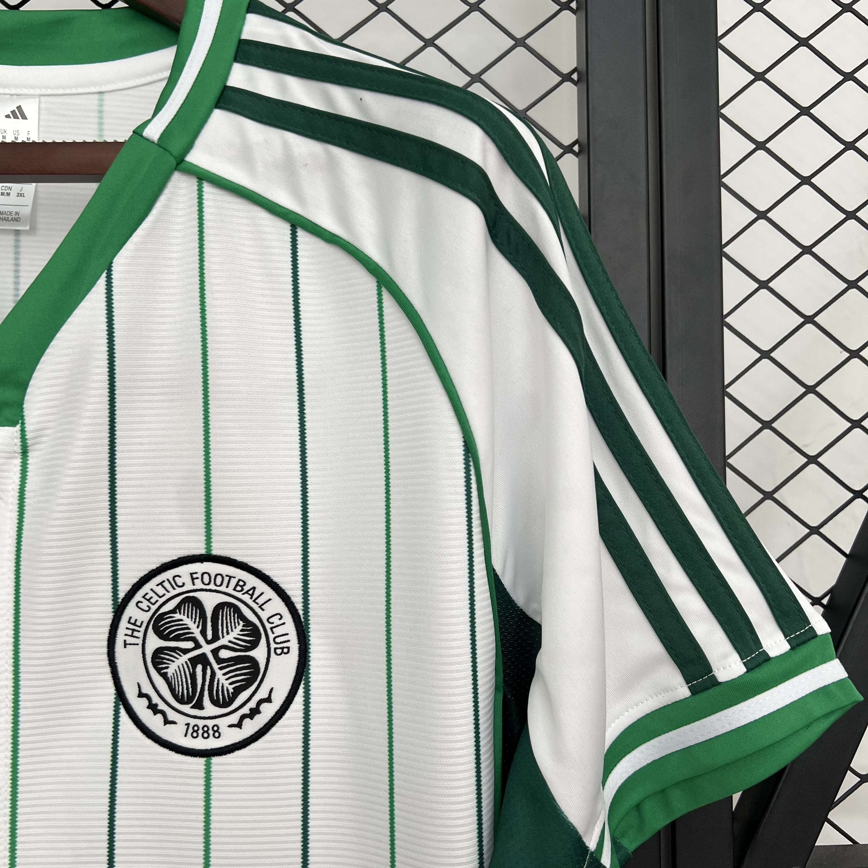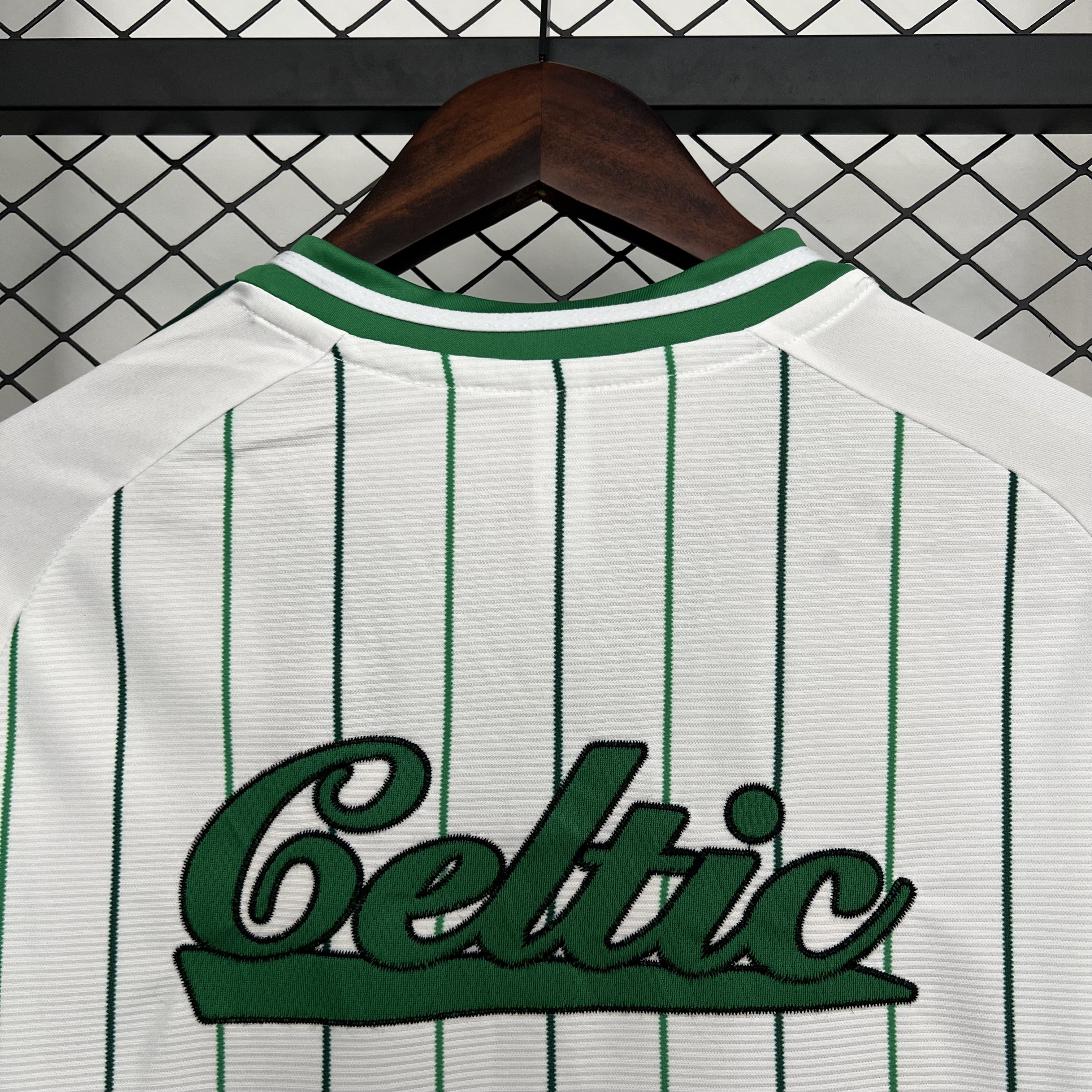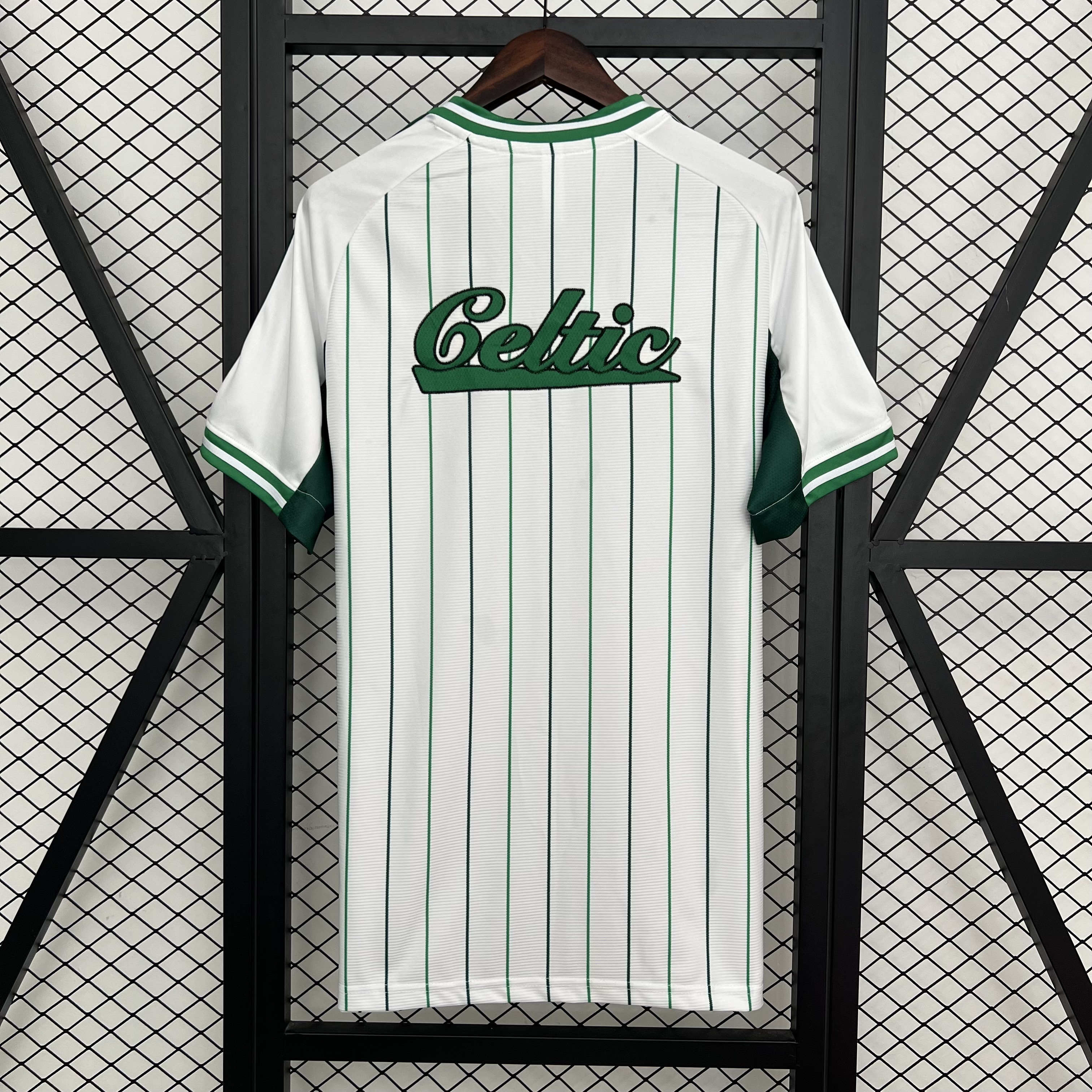 Celtic 25-26 White Baseball Jersey with Red Black Stripes