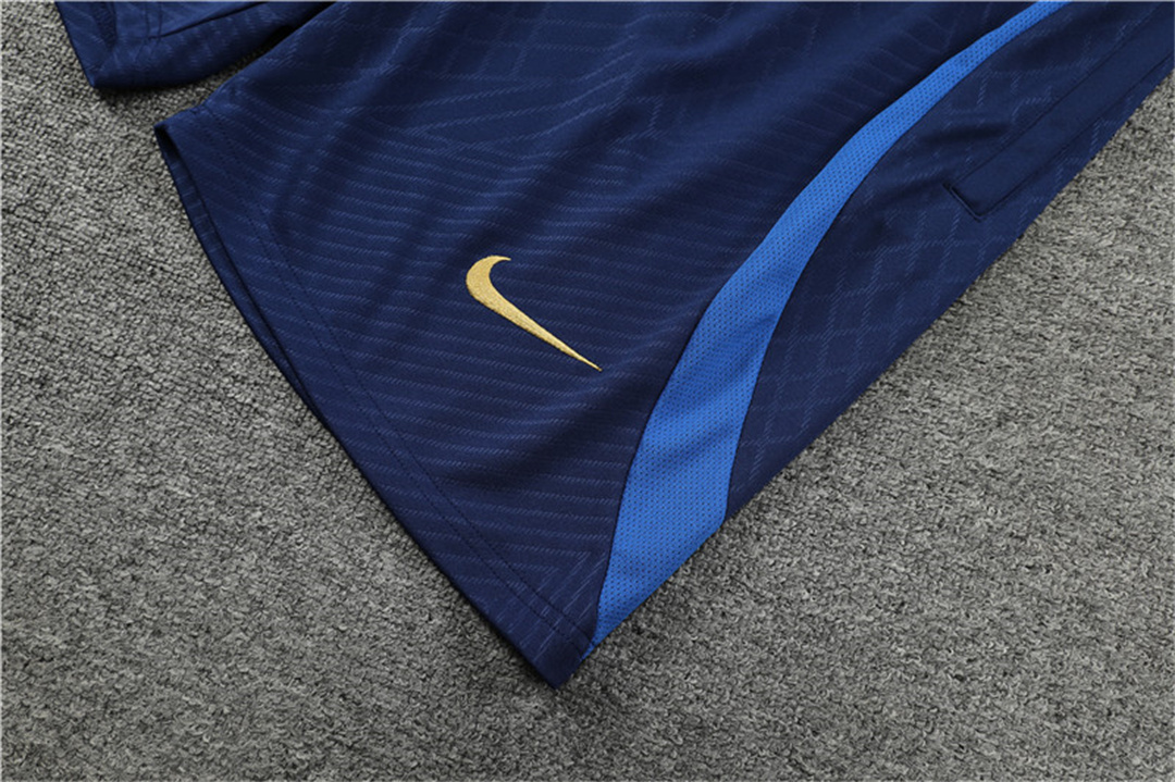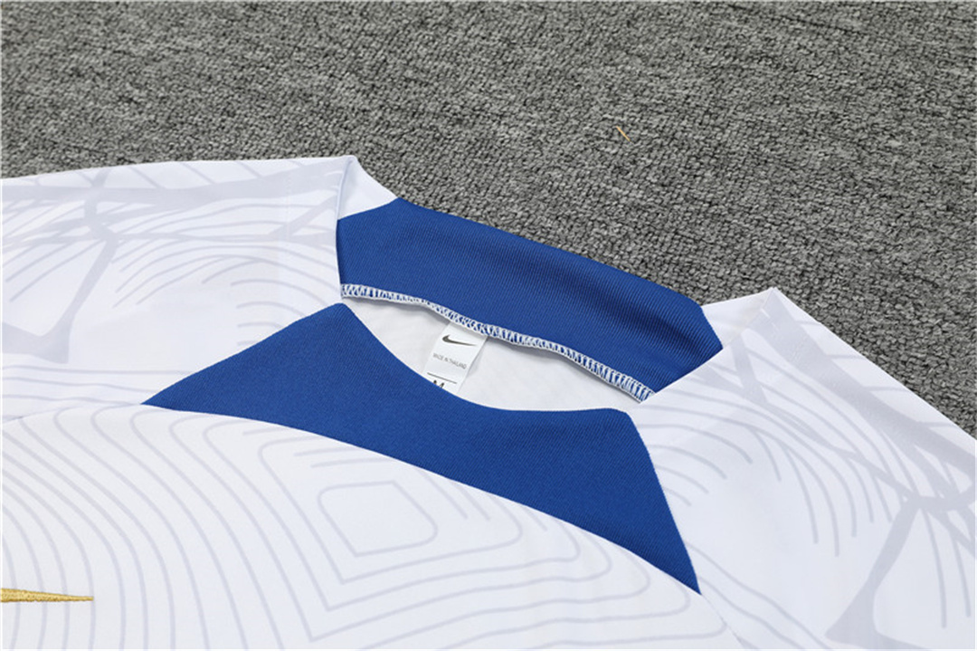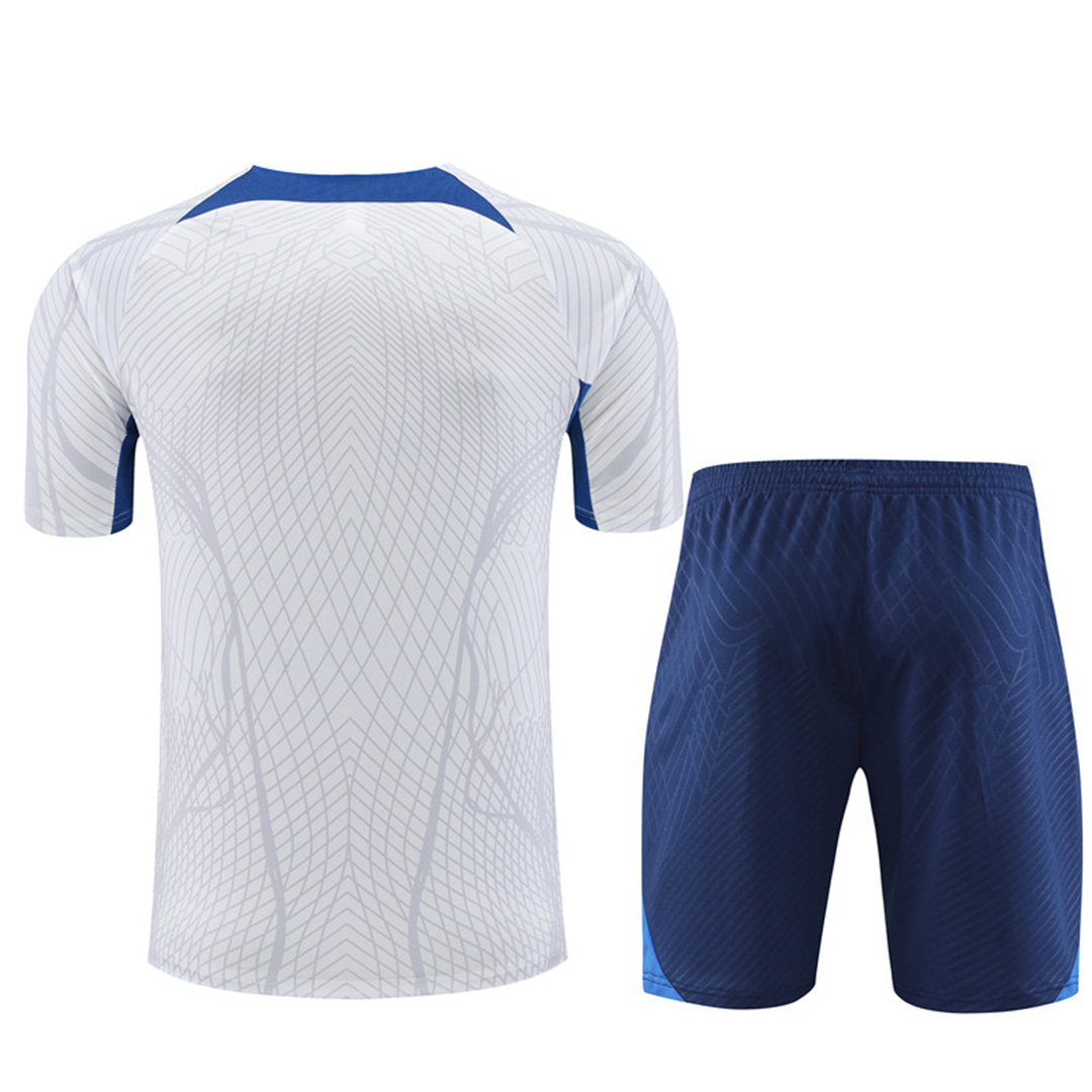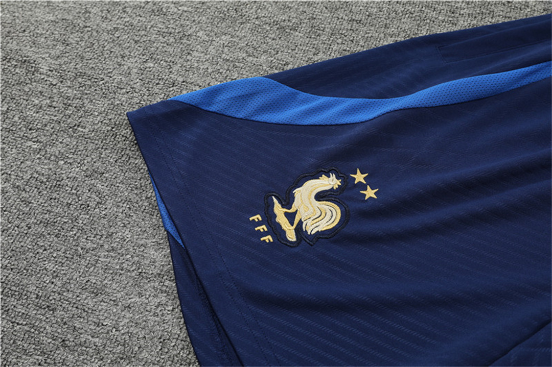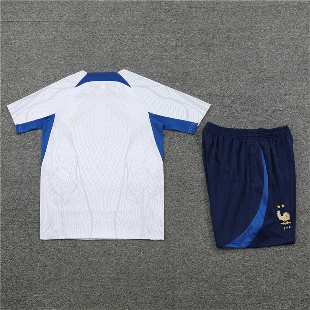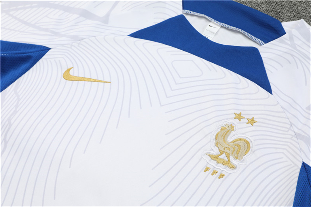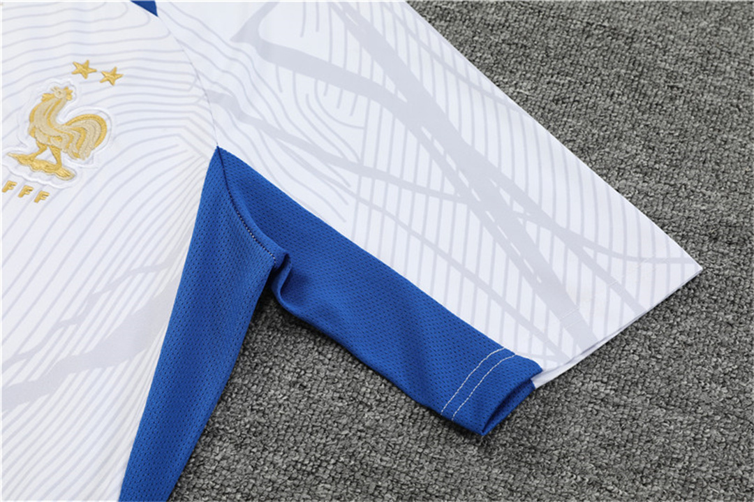 France 2022 Short-Sleeve Training Set - White Top and Blue Pants