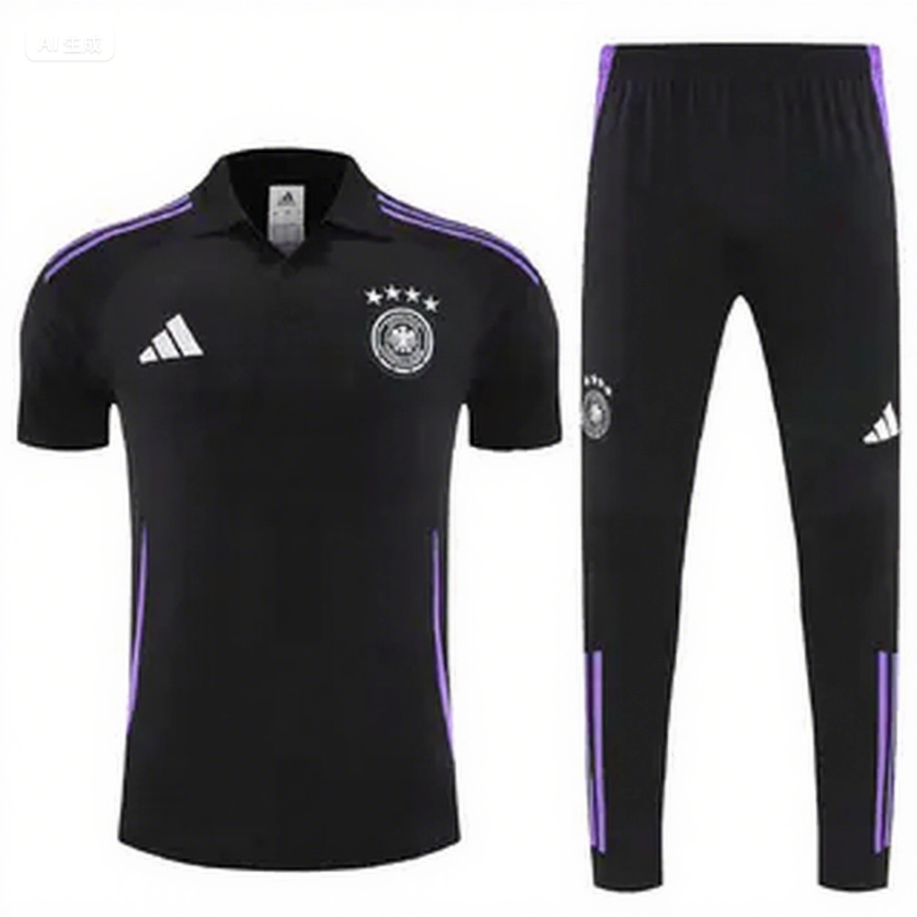 Germany 2025 POLO Short-Sleeve Training Set - Black Top and Pants