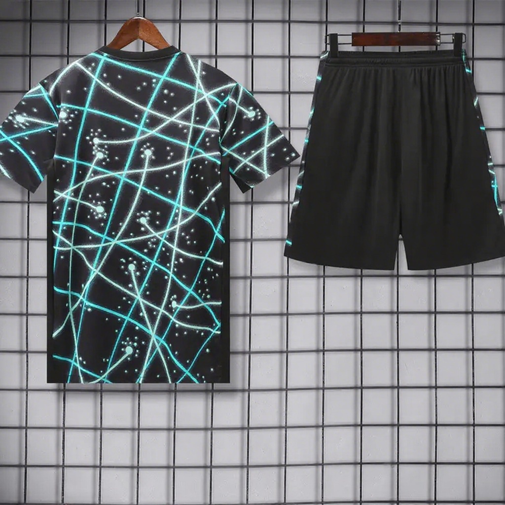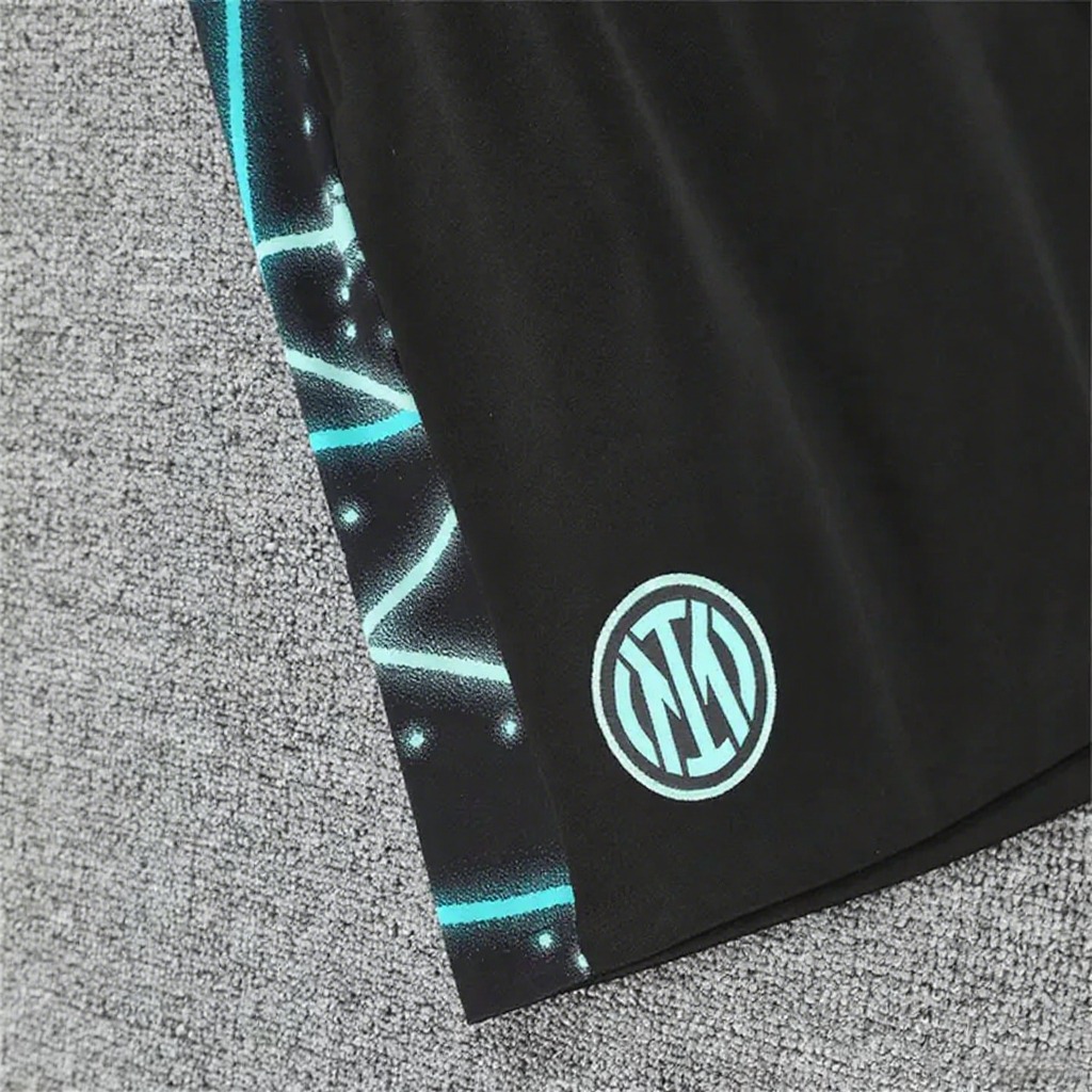 Inter Milan 25-26 Short-Sleeve Training Set - Blue Fluorescent Rays Black Top & Black Shorts