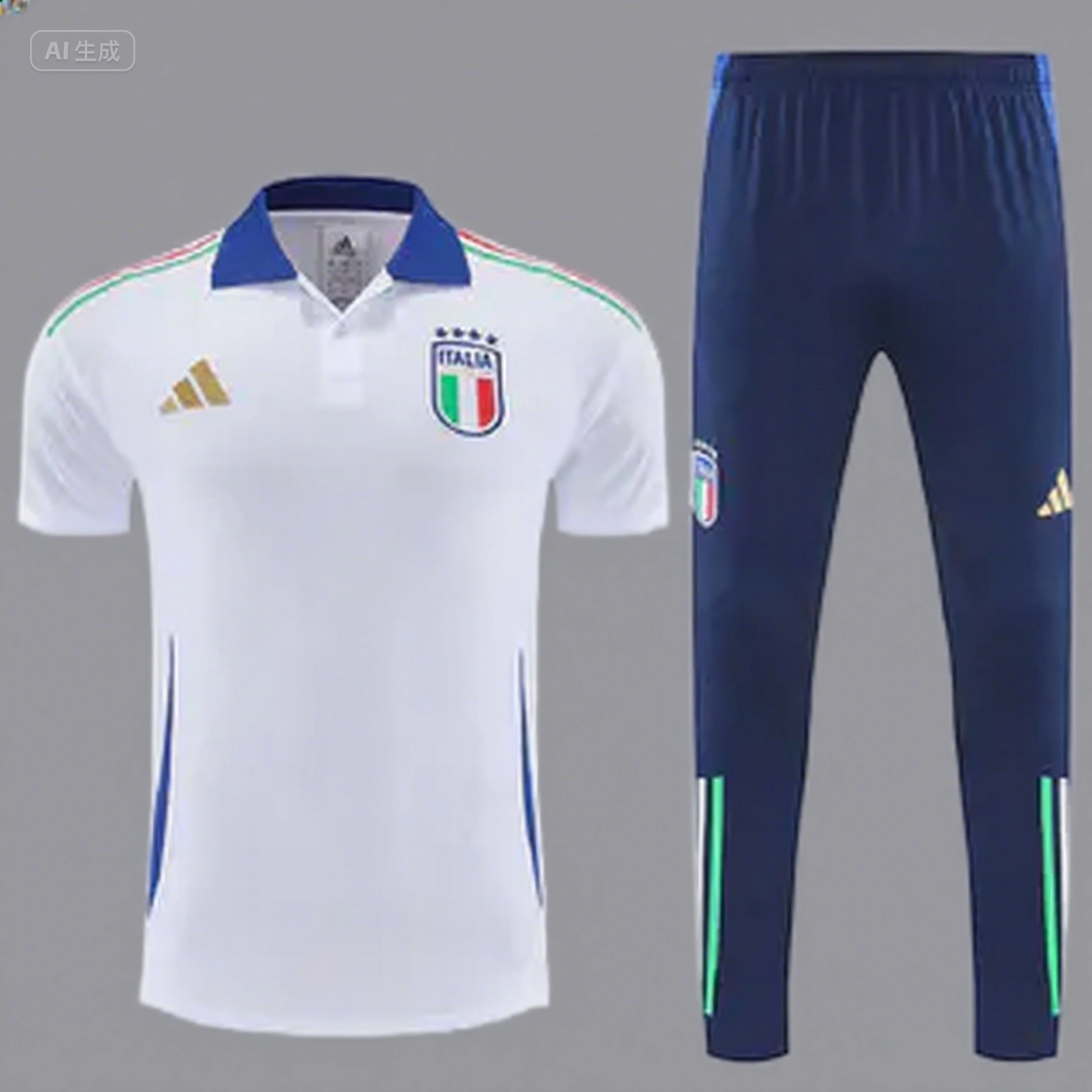 Italy 2025 POLO Short-Sleeve Training Set - White Top and Deep Blue Pants