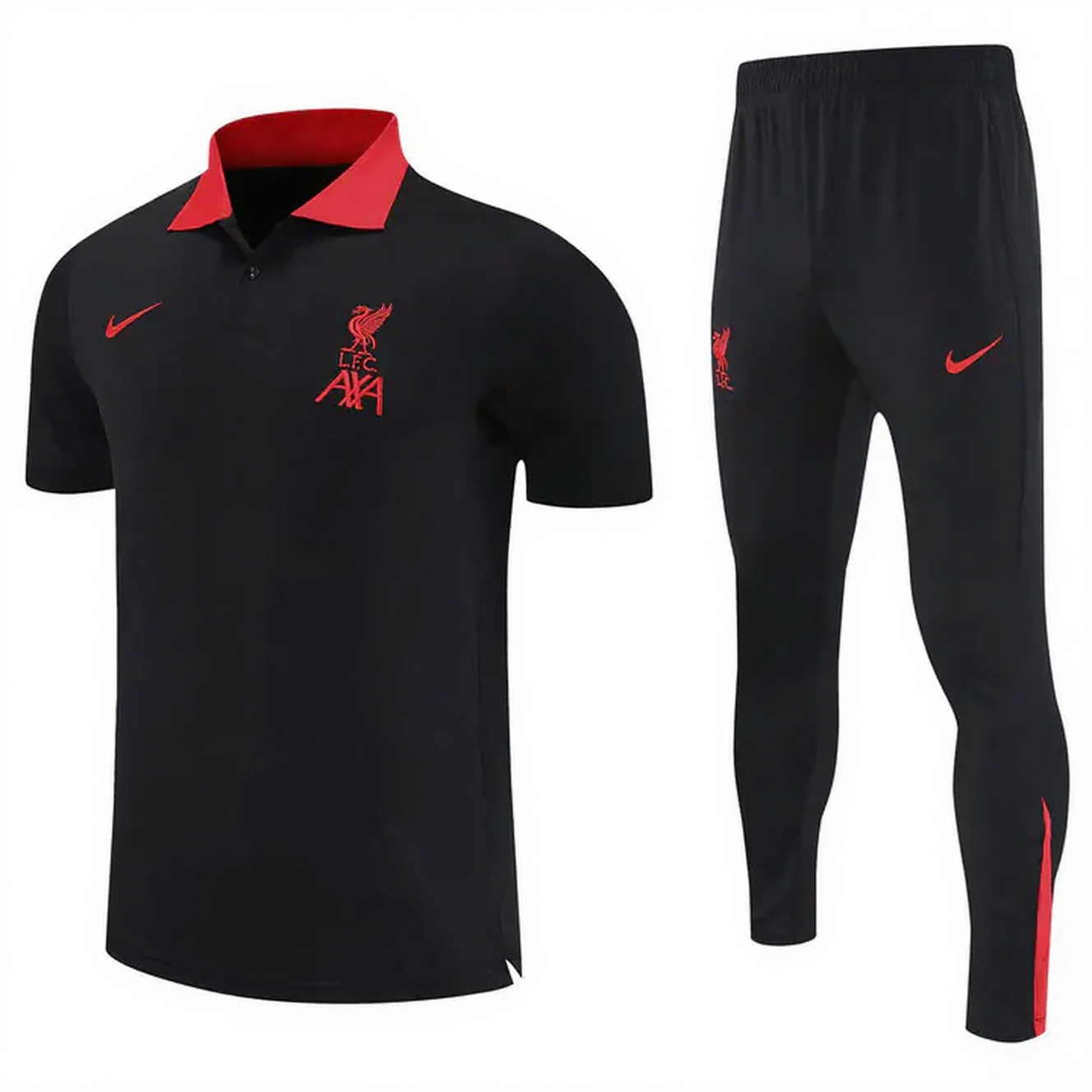 Liverpool 25-26 POLO Short-Sleeve Training Set - Black Top and Pants