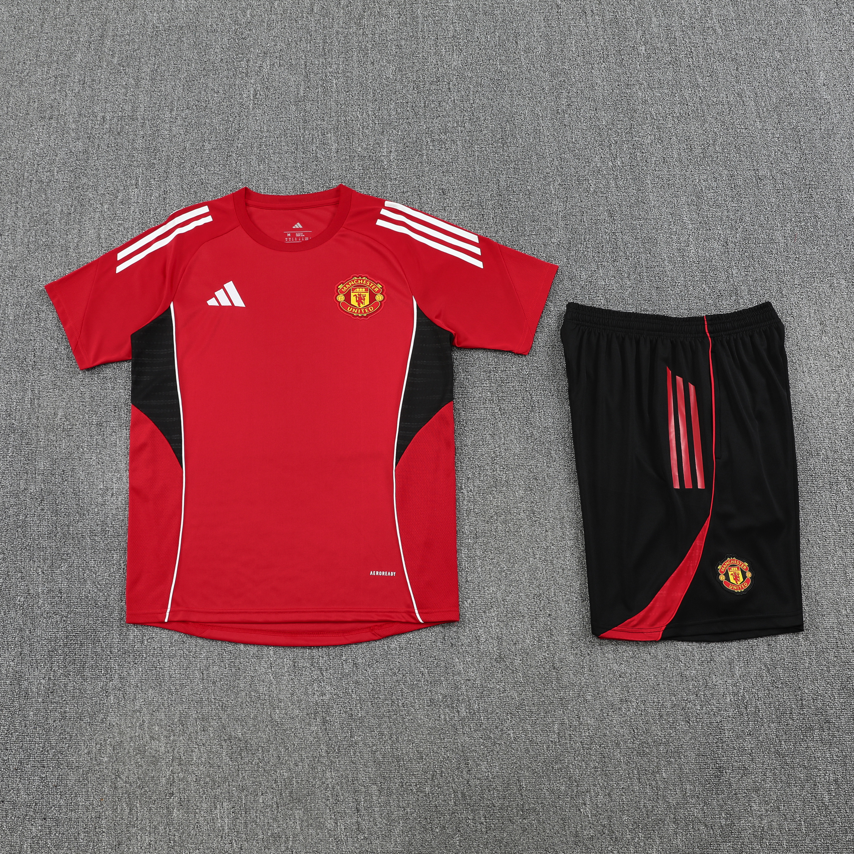 Manchester United 25-26 Retro Short-Sleeve Training Set - Red Top and Black Shorts