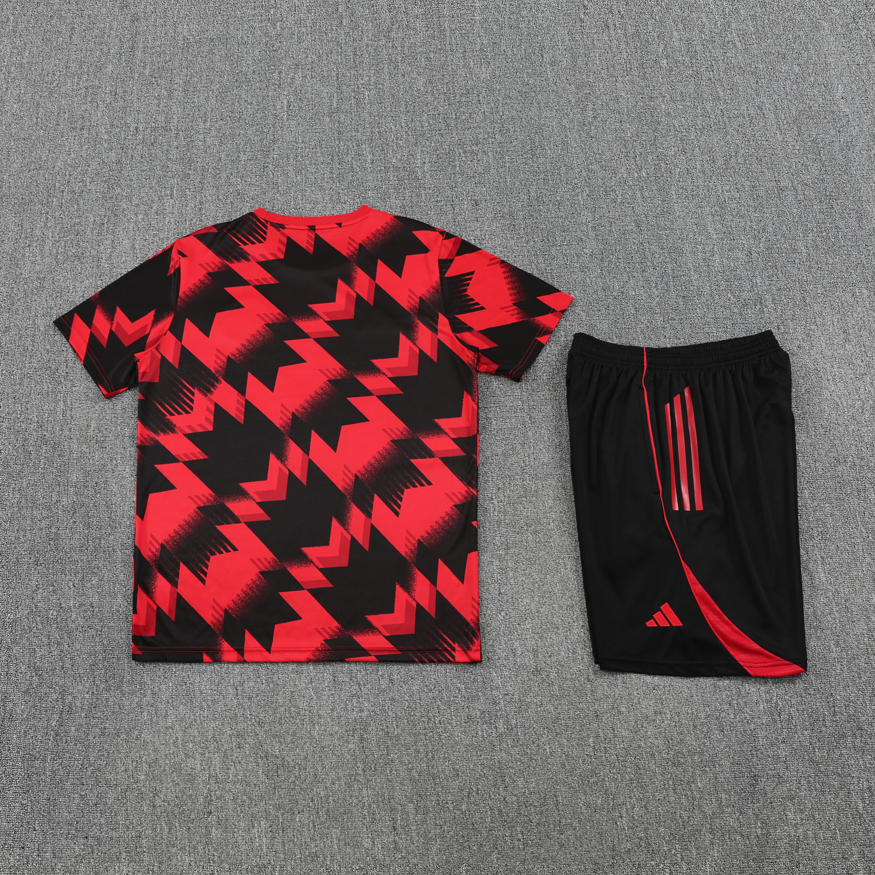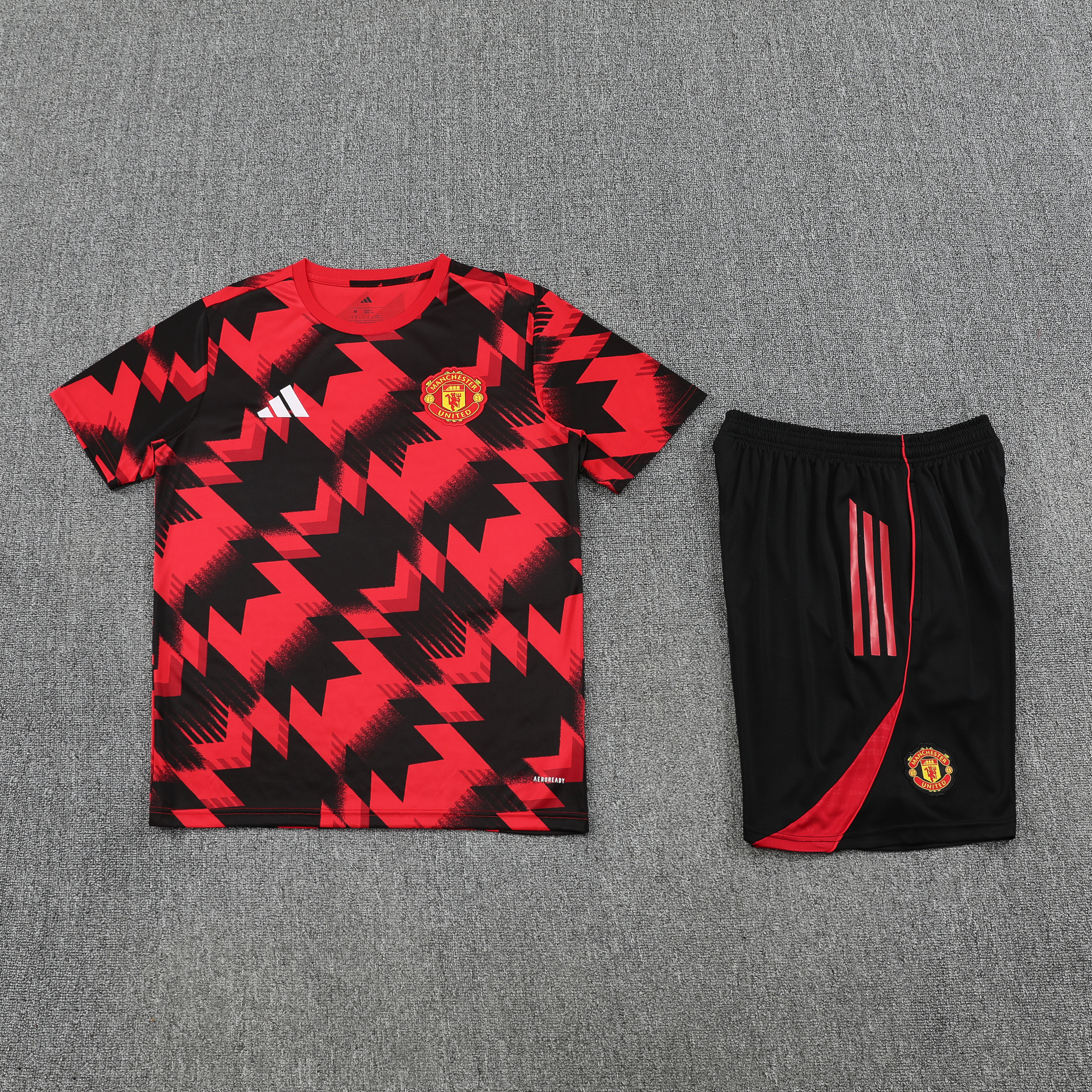 Manchester United 25-26 Retro Short-Sleeve Training Set - Red-black Top and Black Shorts