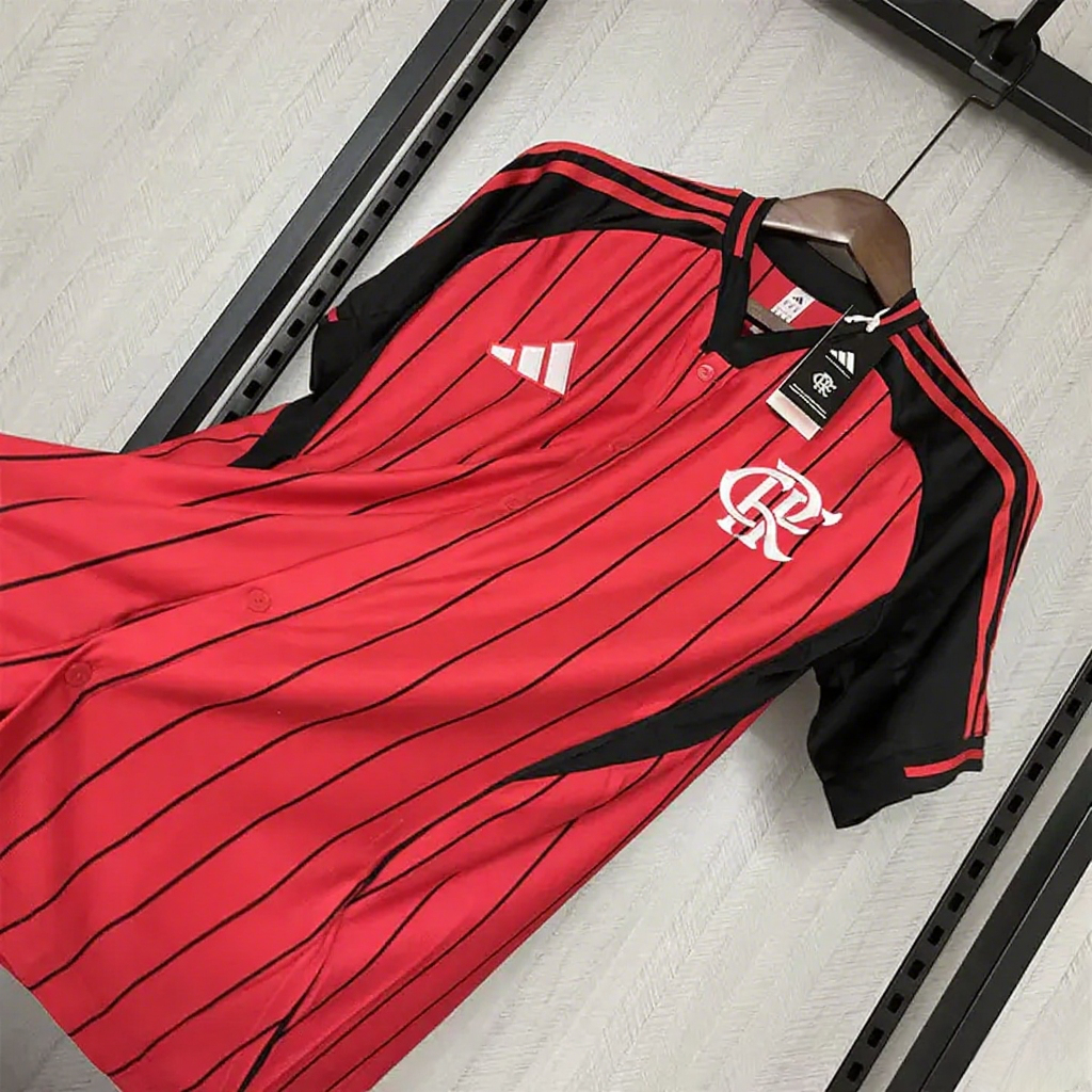 Flamengo 25-26 Red Baseball Jersey with Black Stripes
