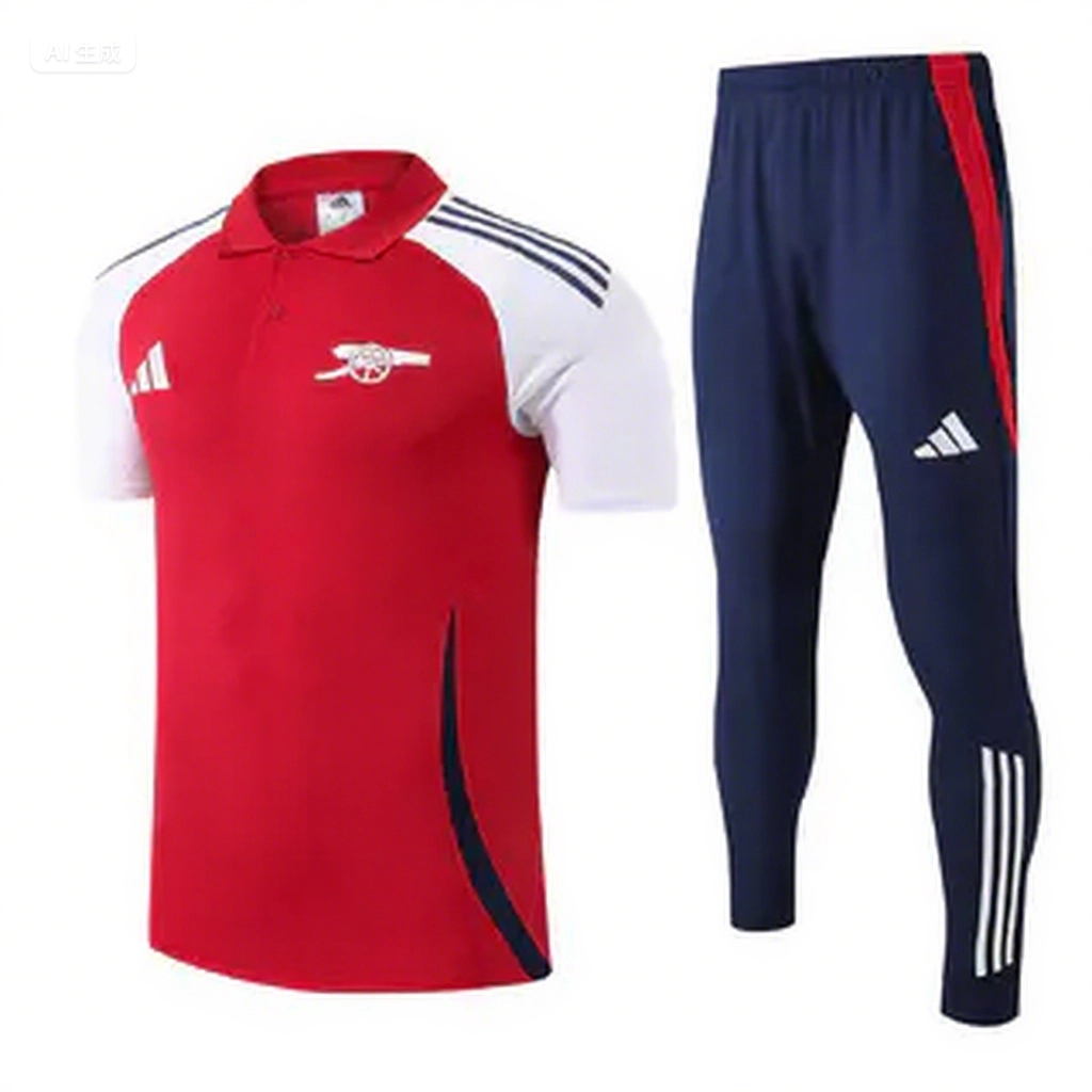 Arsenal 25-26 POLO Short-Sleeve Training Set - Red Top and Deep Blue Pants