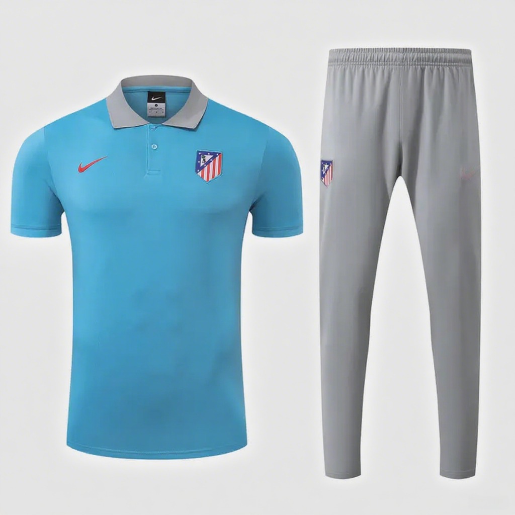 Atletico Madrid 25-26 POLO Short-Sleeve Training Set - Blue Top and Grey Pants