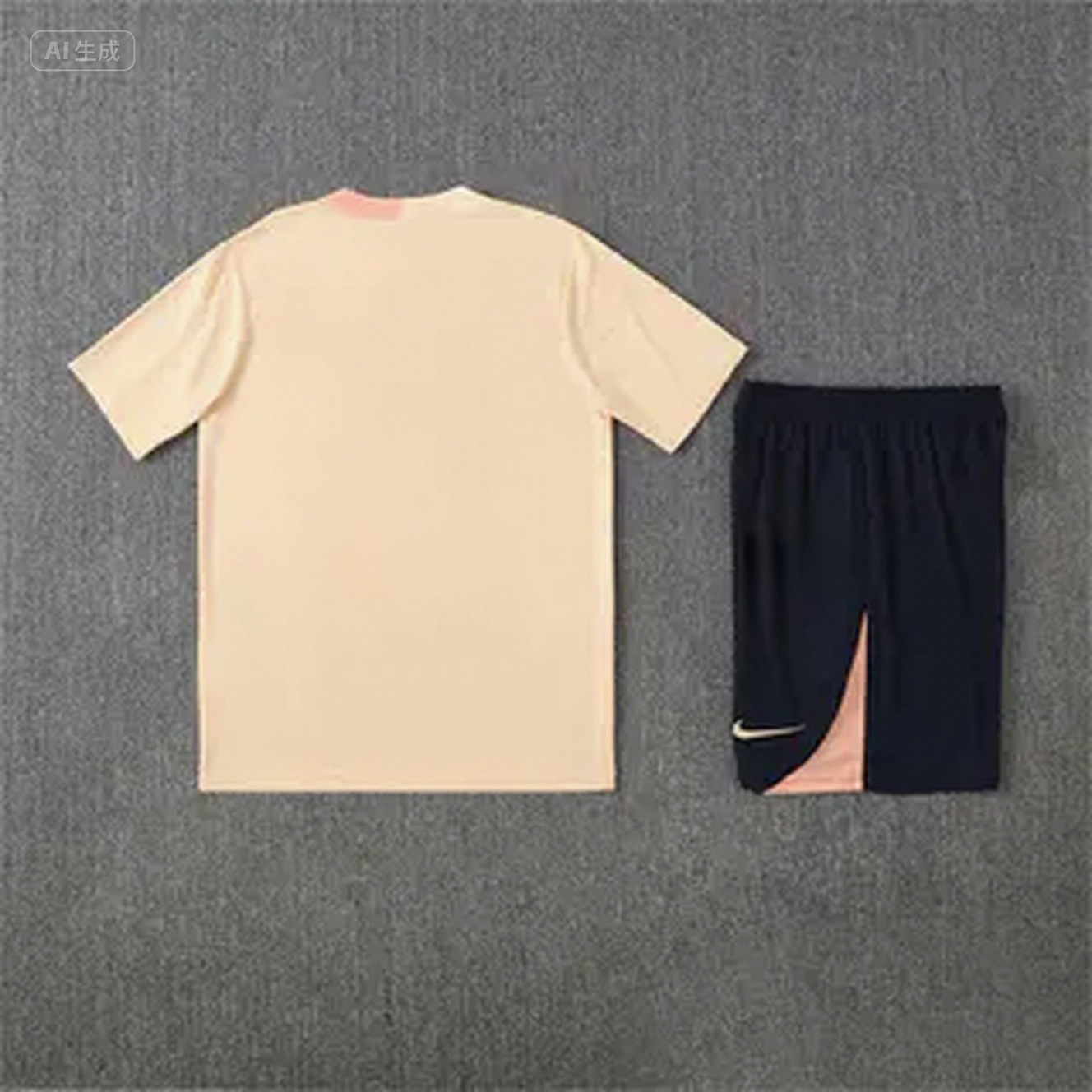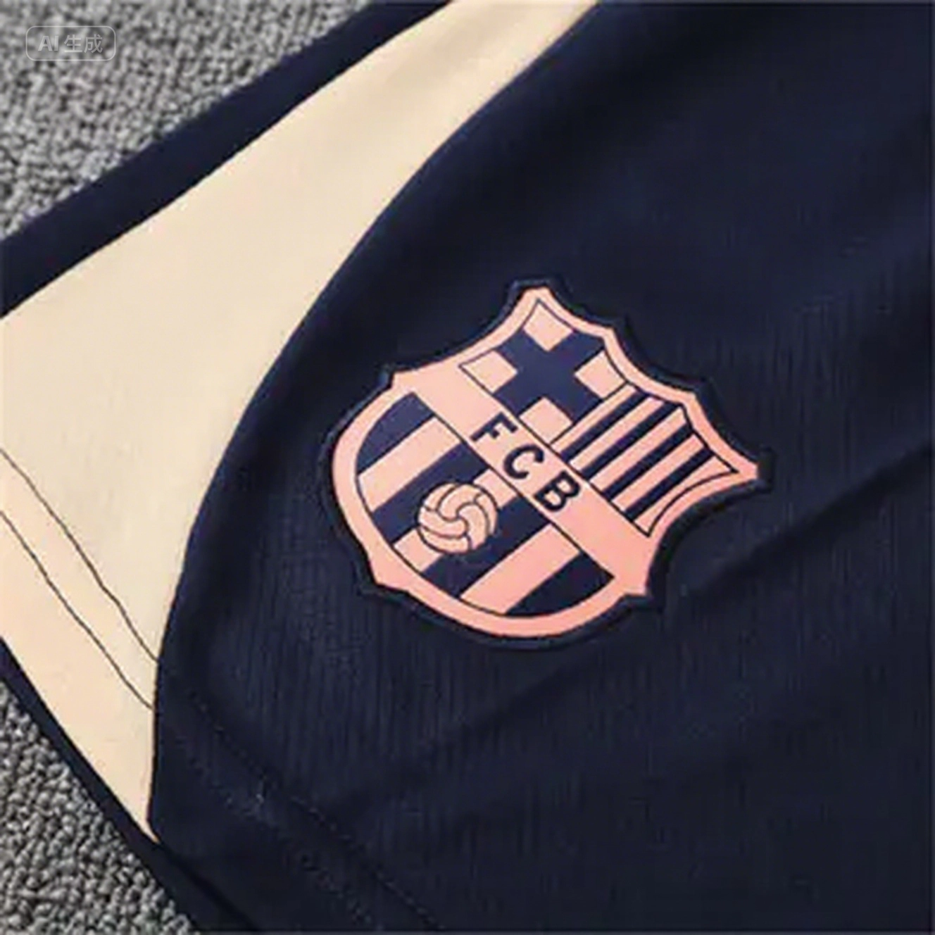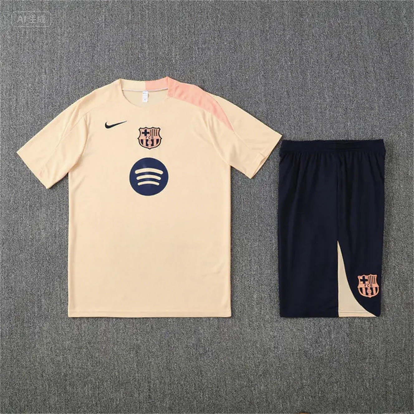 Barcelona 25-26 Short-Sleeve Training Set - Beige Top & Blue Shorts
