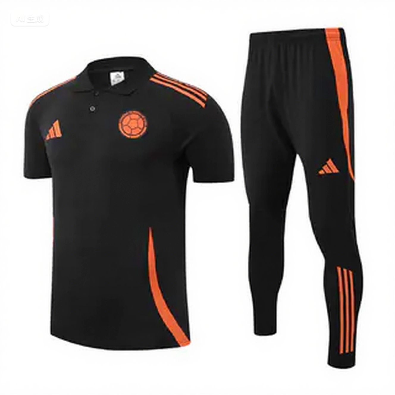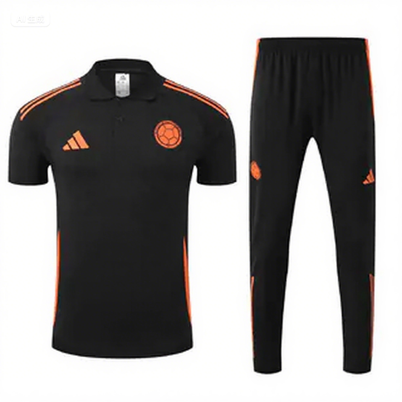 Colombia 25-26 POLO Short-Sleeve Training Set - Black Top and Pants
