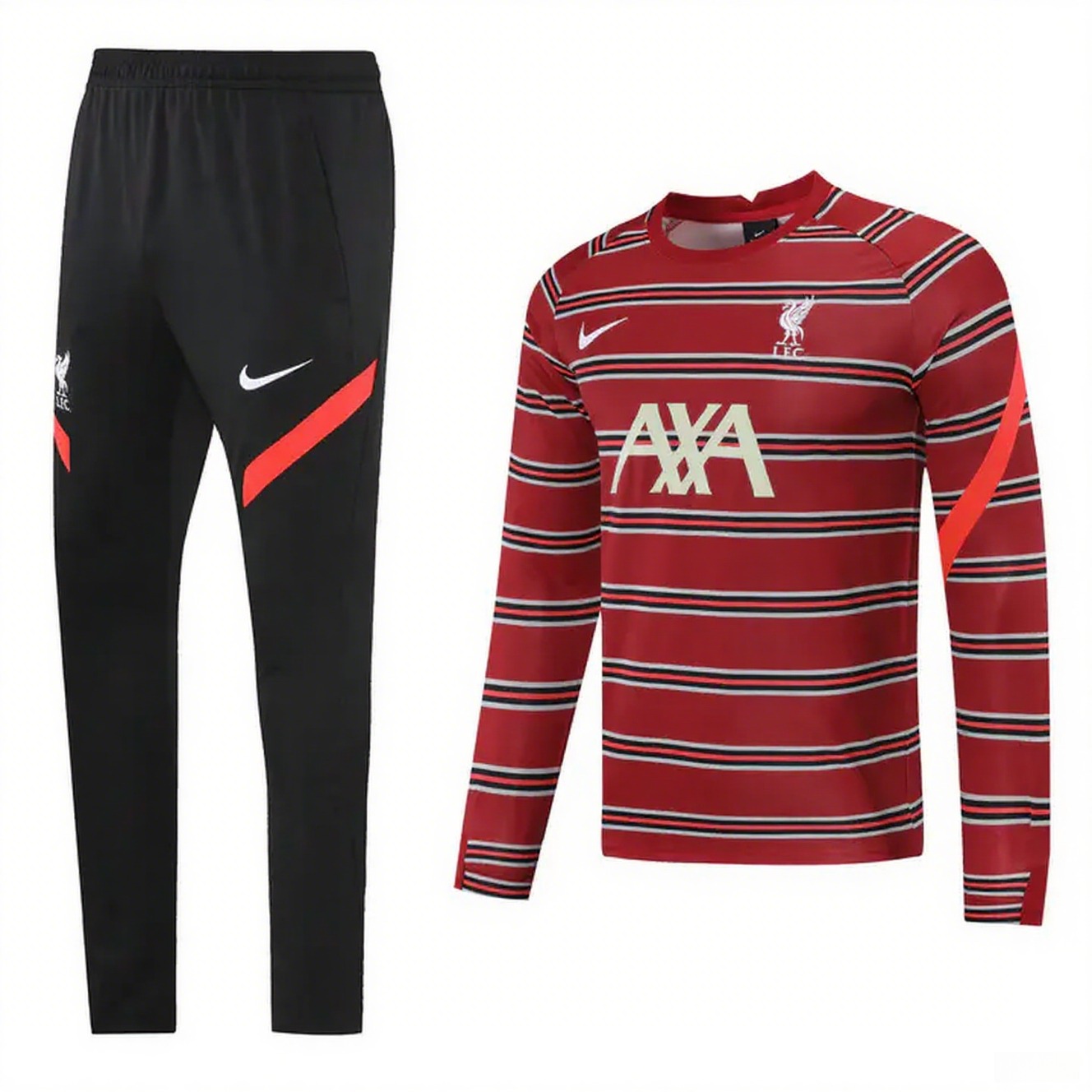 Liverpool 24-25 Long Sleeve Training Set - Red Stripe Top and Black Pants