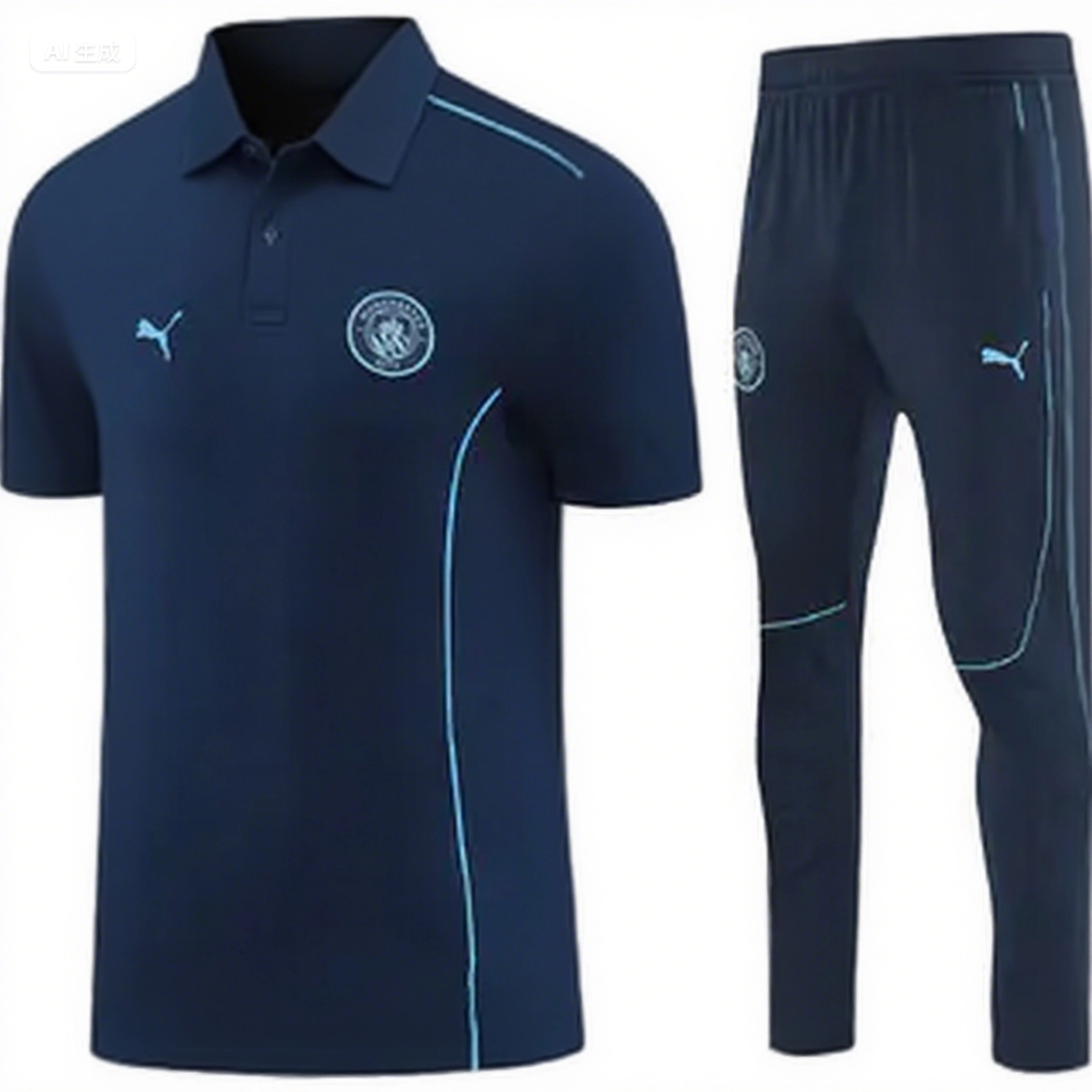 Manchester City 25-26 POLO Short-Sleeve Training Set - Deep Blue Top and Pants