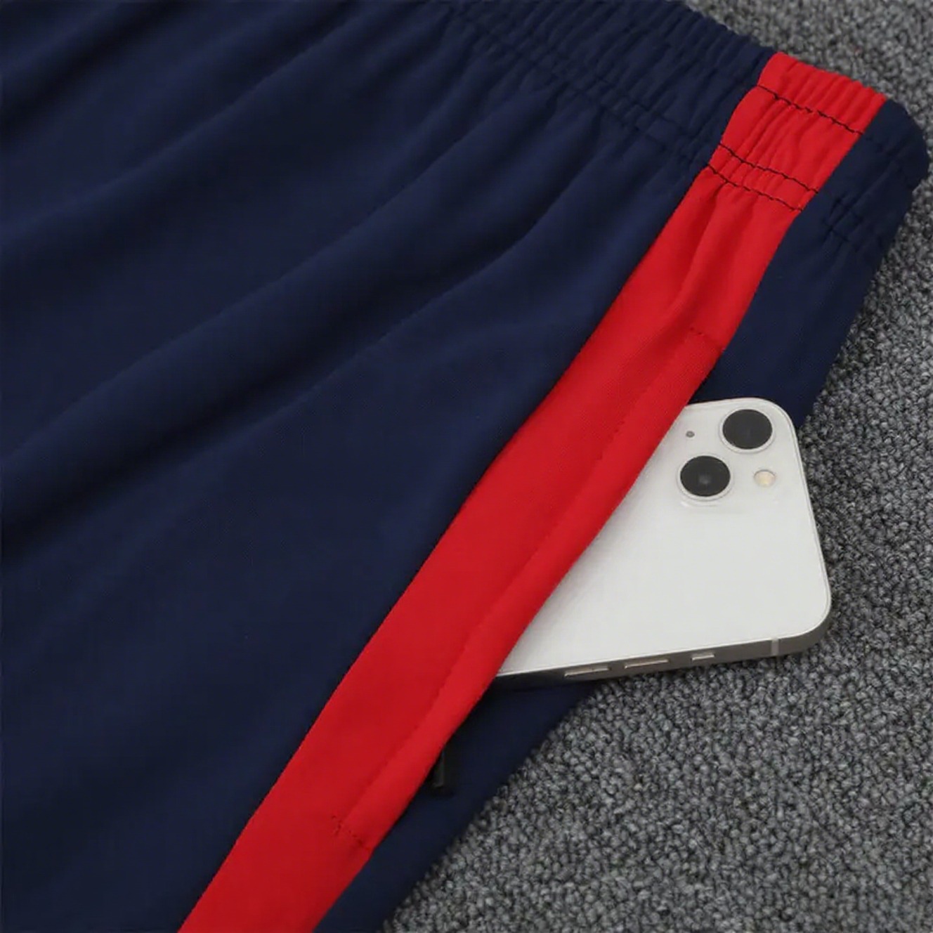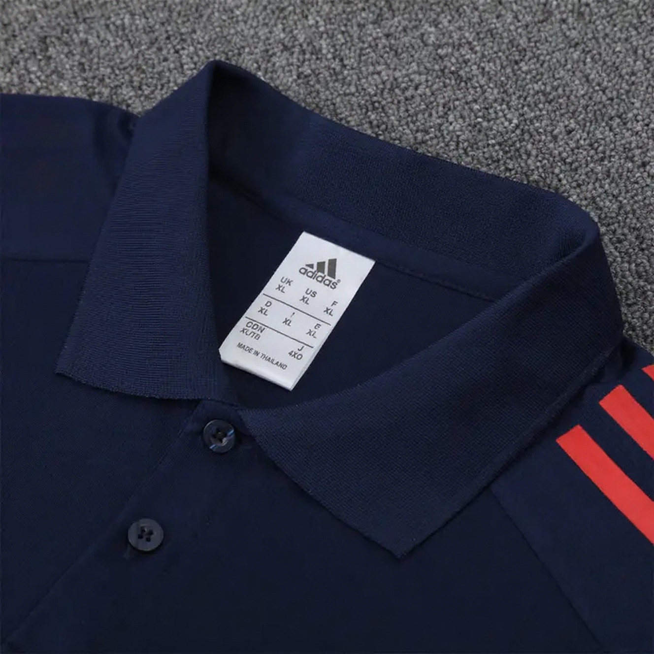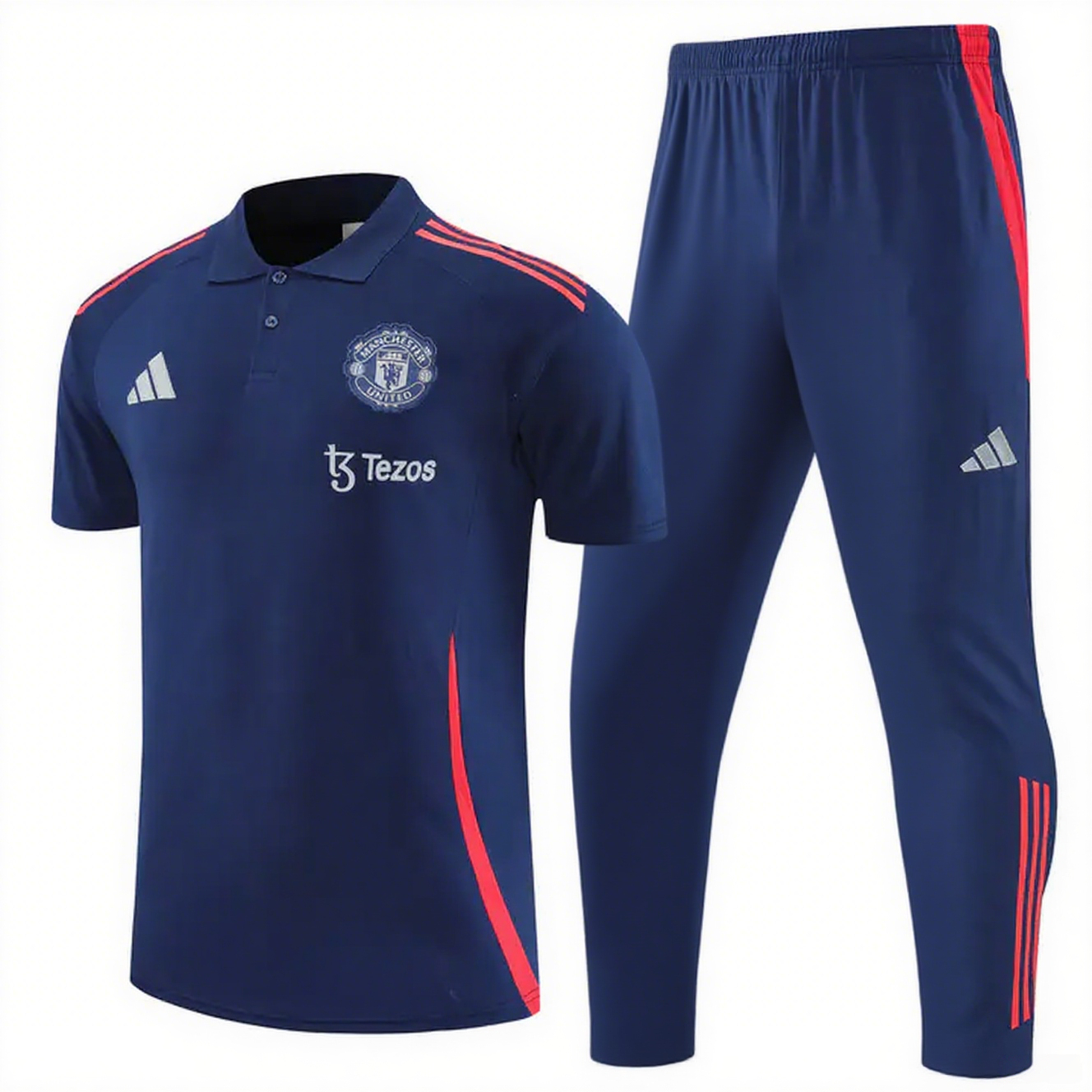 Manchester United 25-26 POLO Short-Sleeve Training Set - Deep Blue Top and Pants with Red Stripes