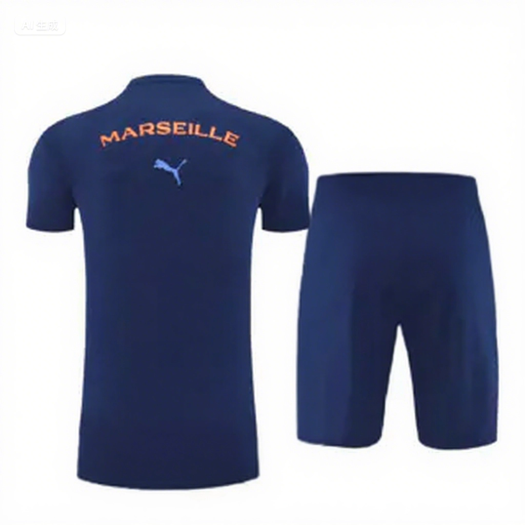 Marseille 25-26 Short-Sleeve Training Set - Blue Top & Blue Shorts