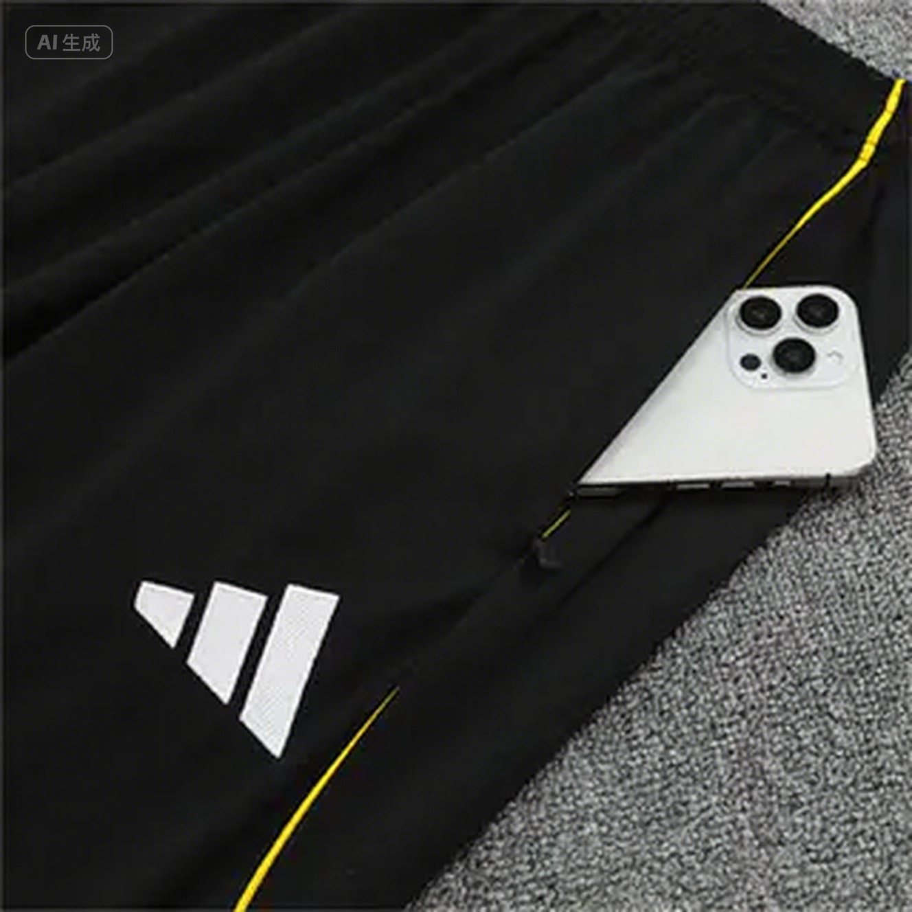 Real Madrid 25-26 Kids Long Sleeve Training Set - Yellow Line White Top and Black Shorts