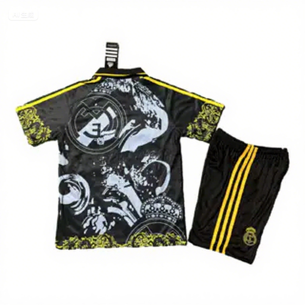 Real Madrid 25-26 Yellow Dragon And Cloud Black Special Polo Kids Kit