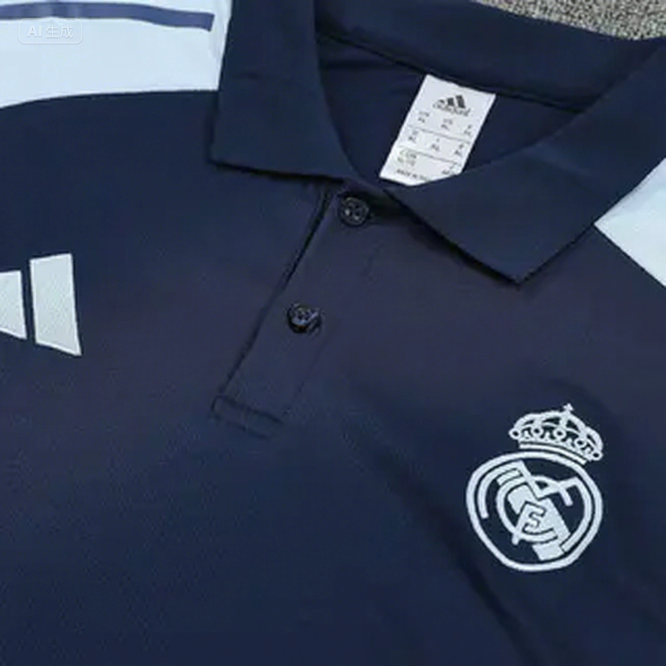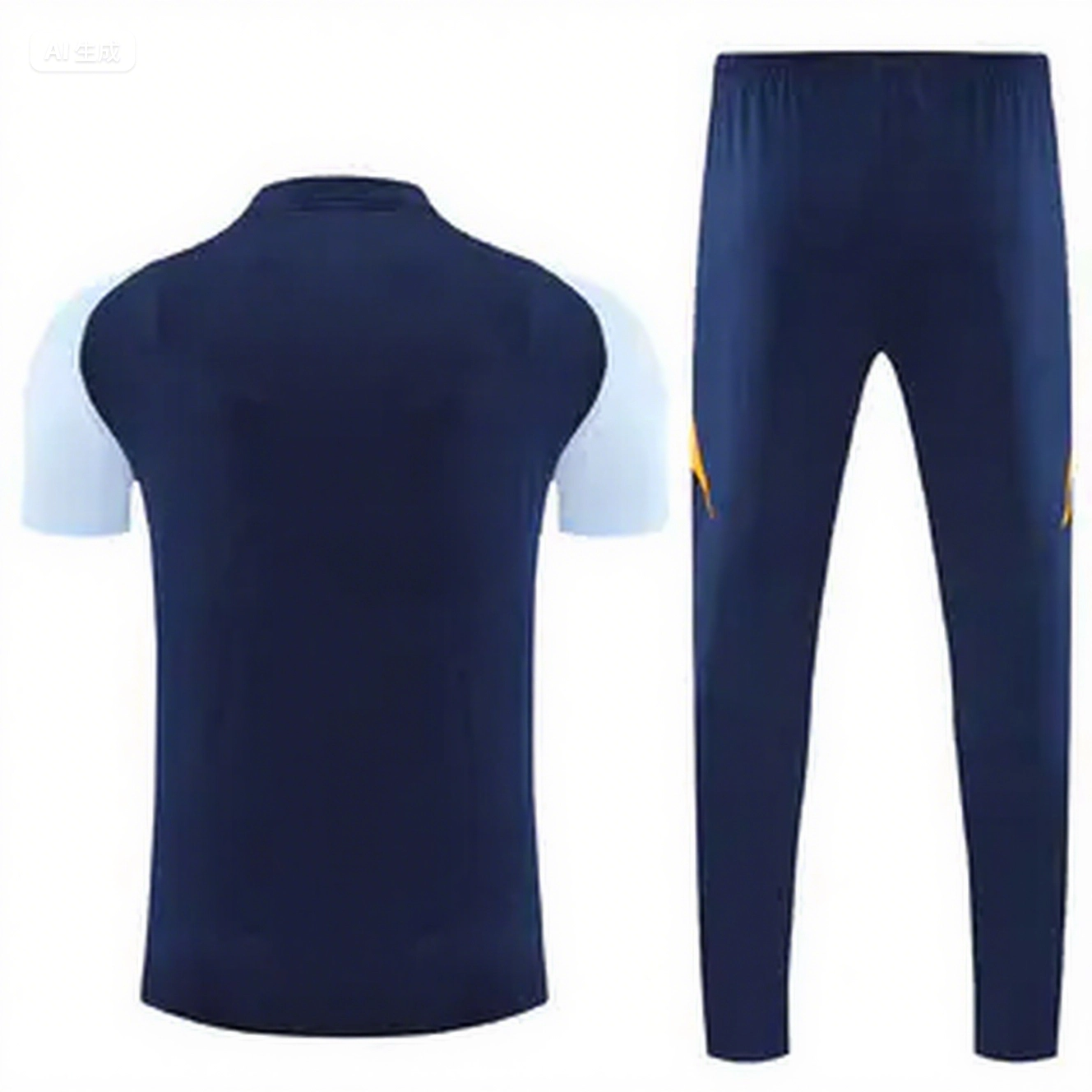 Real Madrid 25-26 POLO Short-Sleeve Training Set - Deep Blue Top and Pants with Yellow Stripes