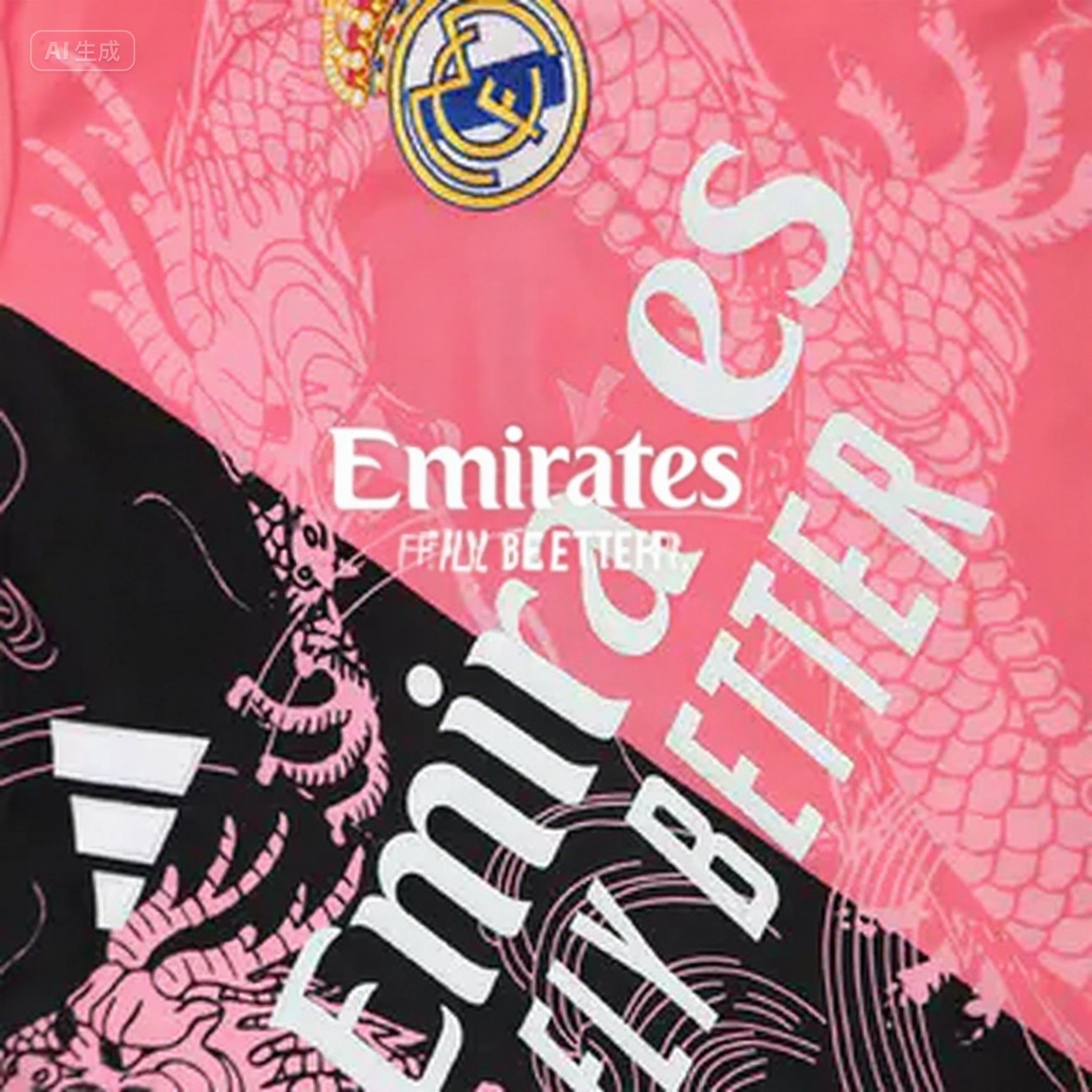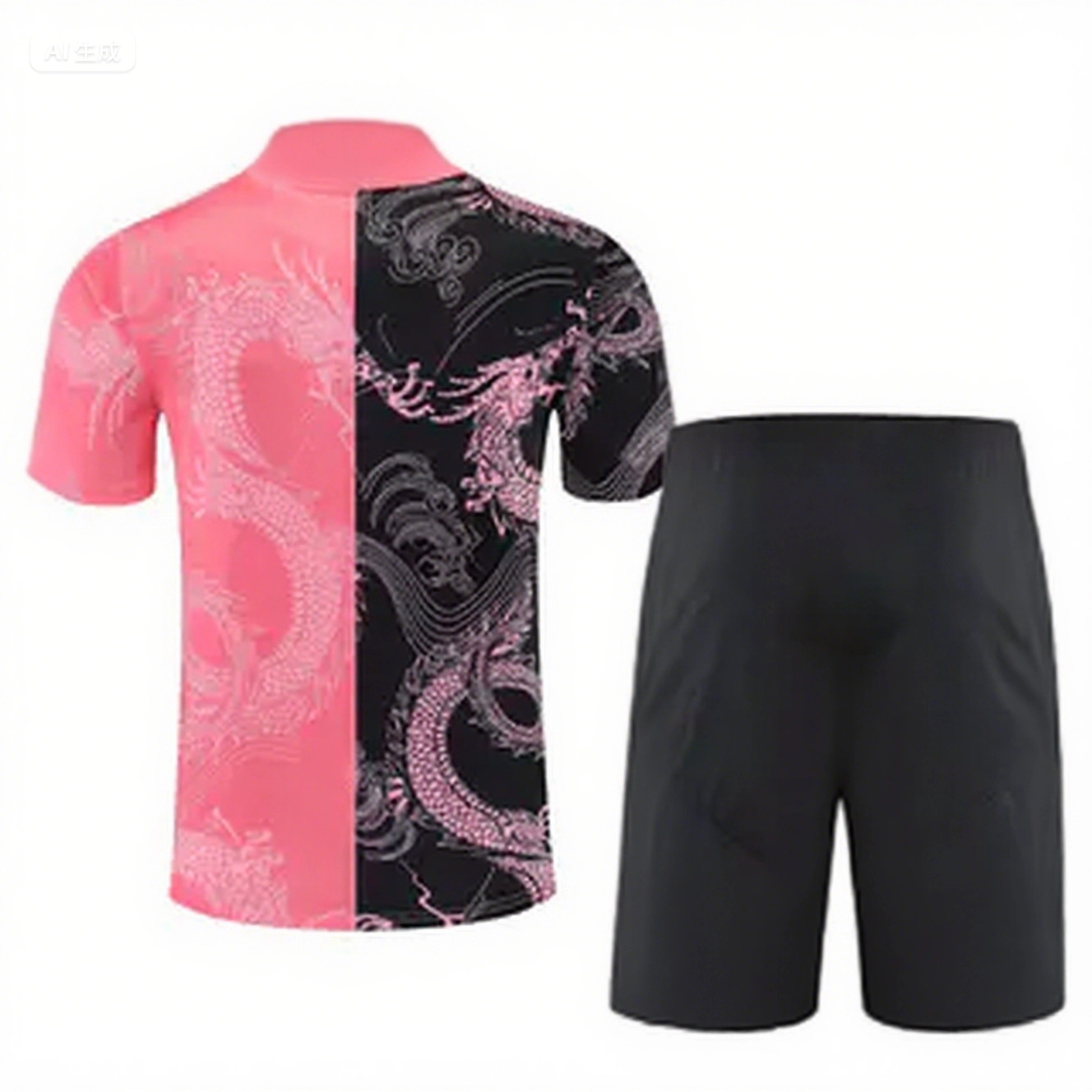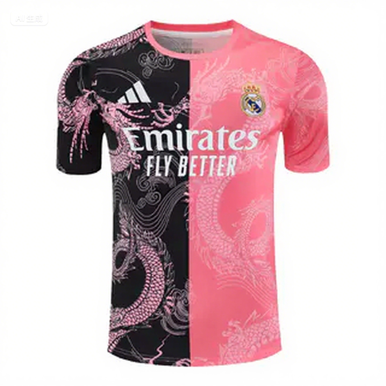 Real Madrid 25-26 Short-Sleeve Training Set - Pink-Black Dragon Top & Black-White Shorts