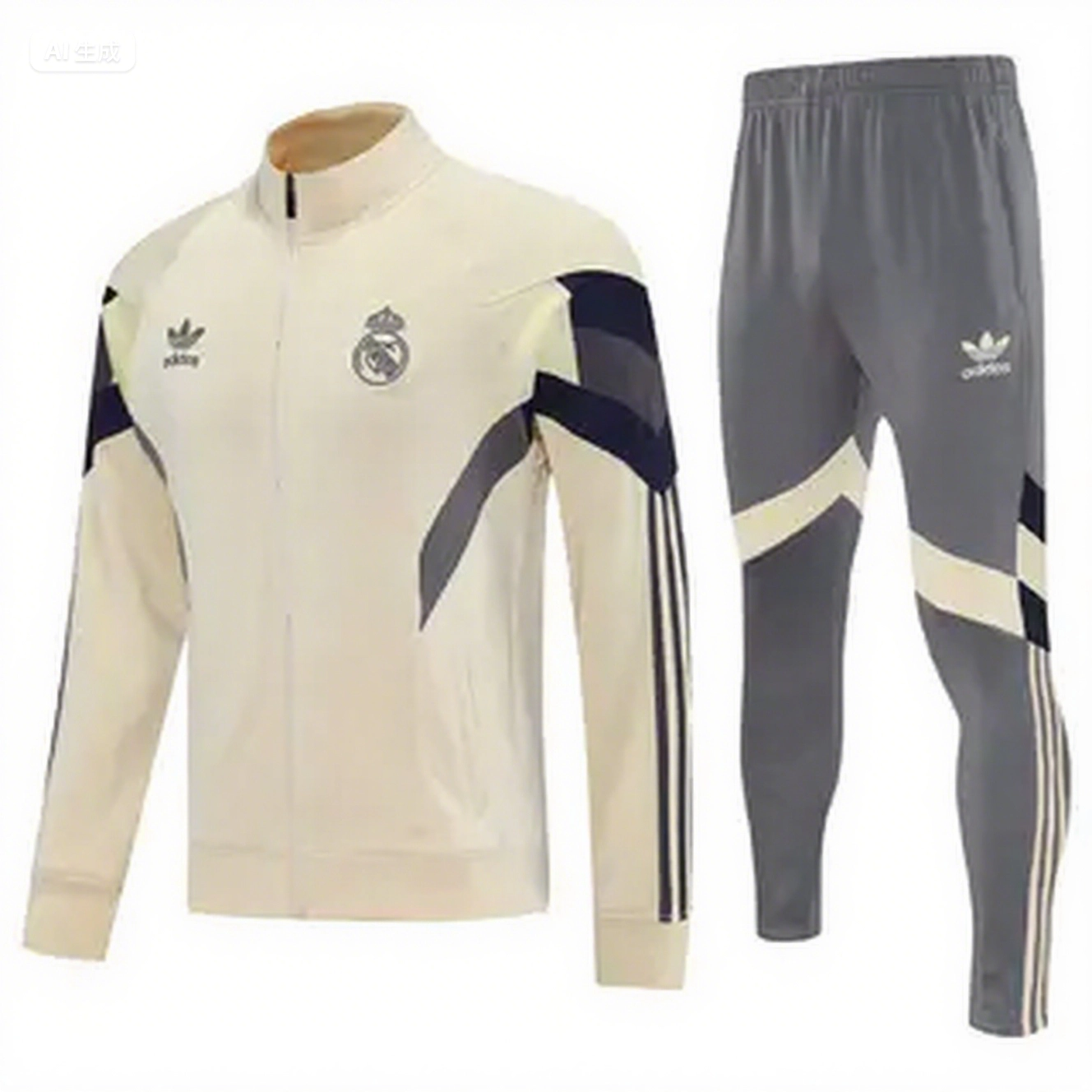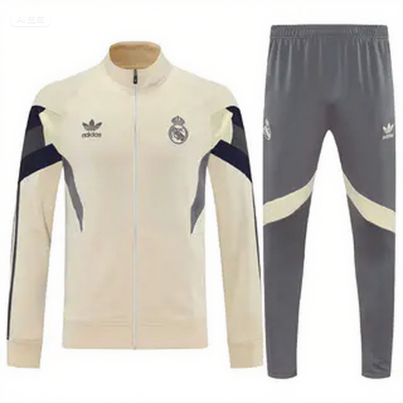 Real Madrid 25-26 Throwback Jacket Training Tracksuit - Off-white Jackets & Grey Pants